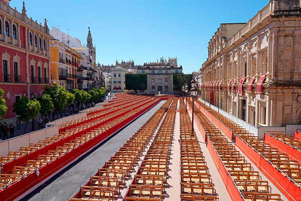 Sevilla: La Carrera Oficial de Sevilla es famosa por sus palcos y sillas, que se instalan en puntos clave como la Plaza de San Francisco. Se trata de un sistema muy regulado por el Consejo General de Hermandades y Cofradías, con reglas específicas sobre la cesión y el uso.