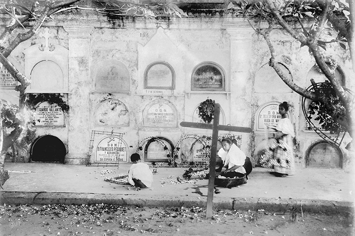 Sistema de nichos funerarios en el cementerio Paco de Manila, hacia 1899