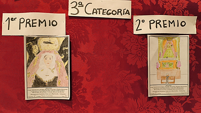 El pasado sábado tuvo lugar la entrega de premios de este XII concurso de dibujo organizado por el Grupo Infantil de la Hermandad. Los trabajos premiados fueron: 1ª categoría Primer premio: Alex Martín Peña. Segundo premio: Vega Bellón Bravo. 2ª categoría Primer premio: Daniel Martín Peña. Segundo premio: Hugo Barrios. 3ª categoría Primer premio: Candela Delgado. Segundo premio: Daniela Martínez. Las empresas que han colaborado en los premios entregados han sido: Librería Juan Alcaide Librería Nobel HIPERoffice Valdepeñas.